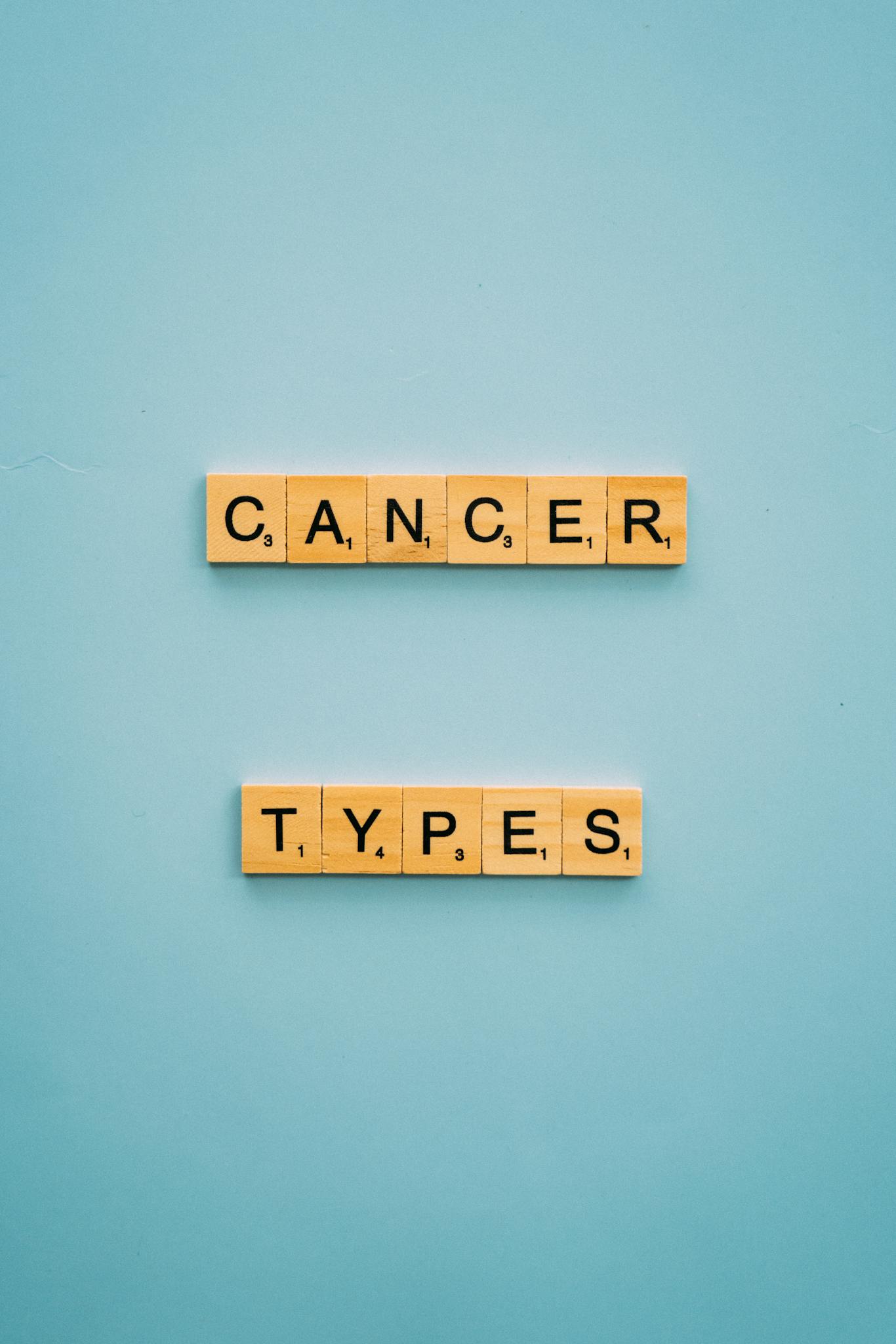 Scrabble tiles spelling 'Neoplasm' on a minimalist blue background. Ideal for health awareness themes.